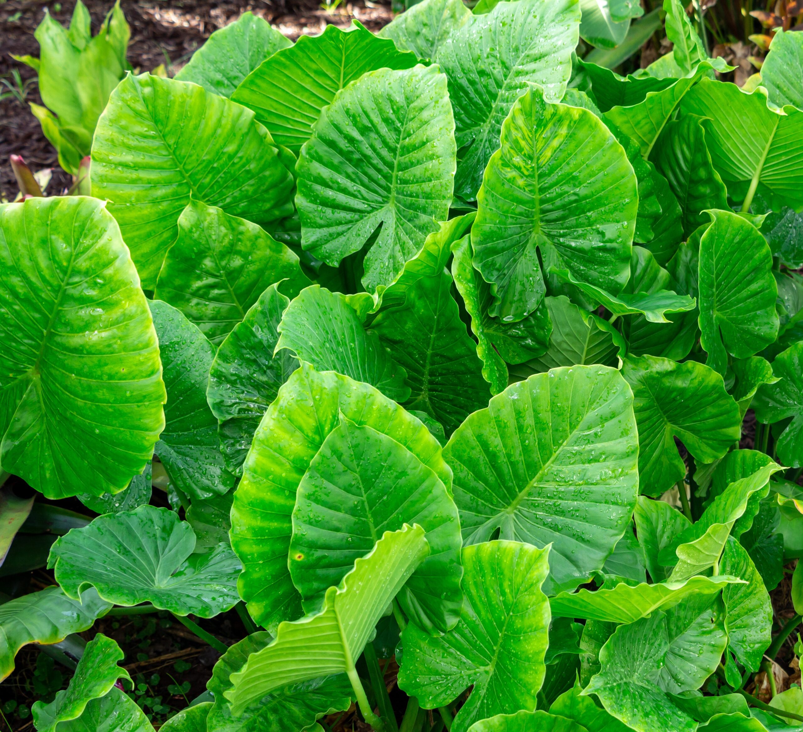 Large, glossy green leaves with a classic upright form; offers a more cold-tolerant option than many other Alocasia varieties